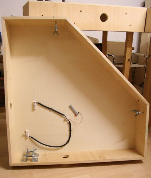 Neben der Bahnstromversorgung ist unter diesem Modul (Modul2 Lotzburgh) auch die Lichtverkabelung für die Hausbeleuchtung eingebaut. Hier fehlt noch der Einbau des Schalters in die Seitenwange.