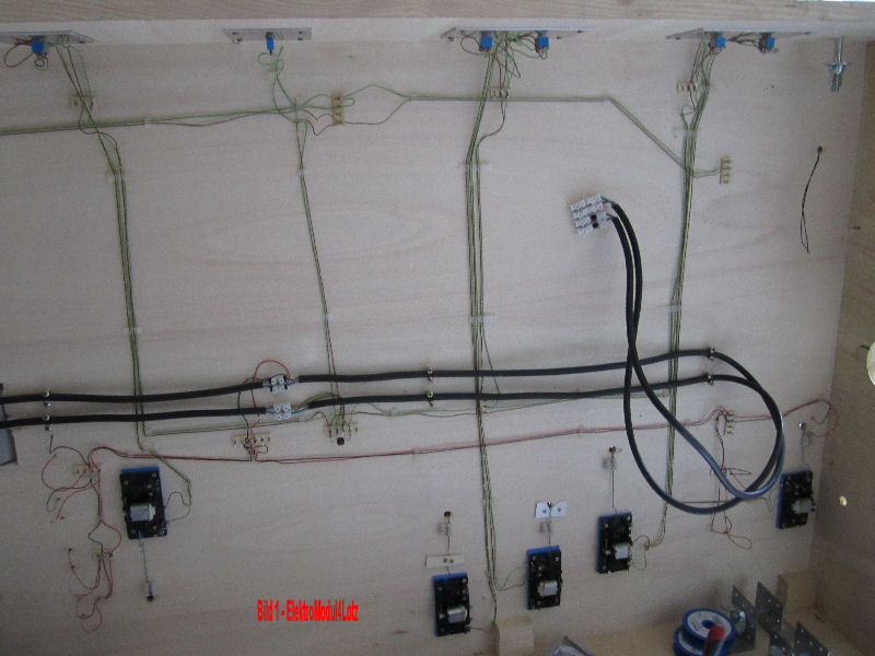 Elektrik: Wir verlegen unter der gesamten Anlage getrennte Ringleitungen für Digitalstrom und Analogstrom aus normalem 3 adrigem Hausversorgungskabel. Die Trennstellen/Anschlüsse werden mit Lüsterklemmen und Steckerlüsterklemmen ausgeführt.