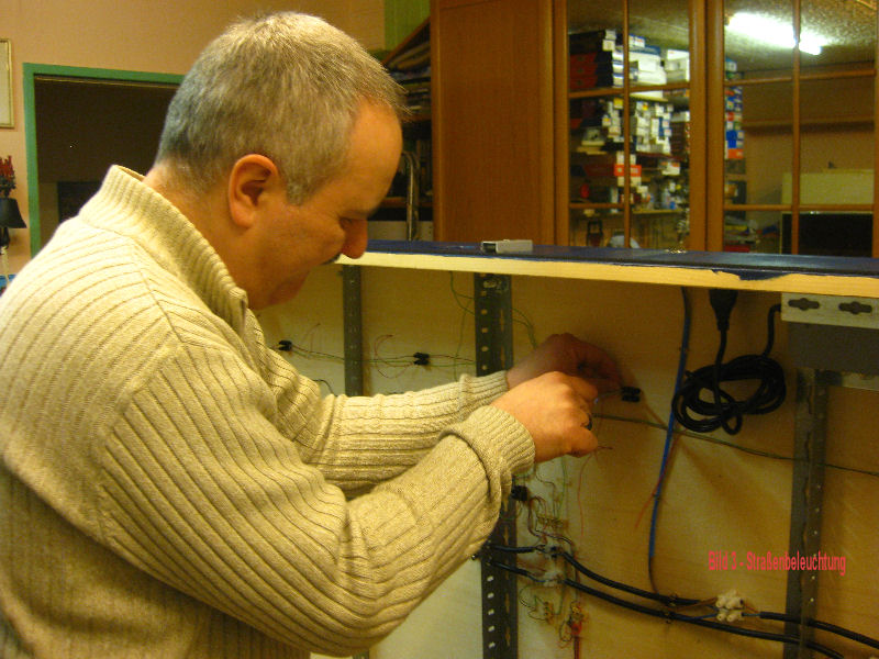 Bild 1 - Die Elektorarbeiten unter Modul 4 Lotzburgh sind fertig. Die Lichtleitung und der Schalter sind eingebaut und verkabelt.