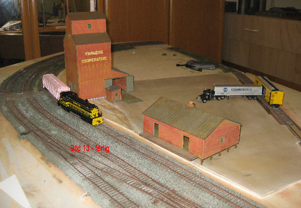 Bild 13 - Die fertige Ladestraße mit dem ungefähren Aufstellungsort der Gebäude - Der "Kamerabeutel" wird NICHT eingeklebt! Gibt Mecker von Ela!