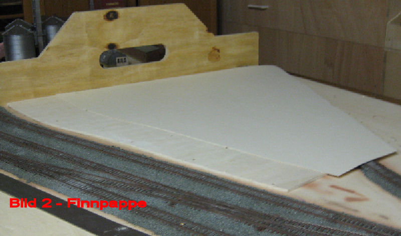 Der Raum zwischen den beiden Ladegleisen (Getreidelager, Lagerhaus, Viehverladung) soll einen Betonplattenbelag erhalten. Die Höhe des Belags soll bis knapp unter Schienenoberkante (ca 8 mm) reichen. Als erstes haben wir uns von dem Raum zwischen den Gleisen eine Papierschablone angefertigt und passgenau ausgeschnitten. Diese wurde auf eine 6 mm starke Pappelholzplatte (am billigsten!) übertragen. Die Platte haben wir dann anhand der Schablone mit einer Stichsäge ausgeschitten und mit Spaxschrauben aufgeschraubt. Als genauer Anschlag an der Modulkante dient uns hier eines unserer Stapelbretter. Weitere Informationen folgen.