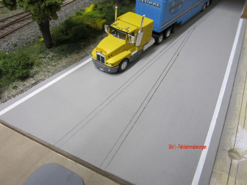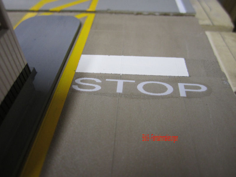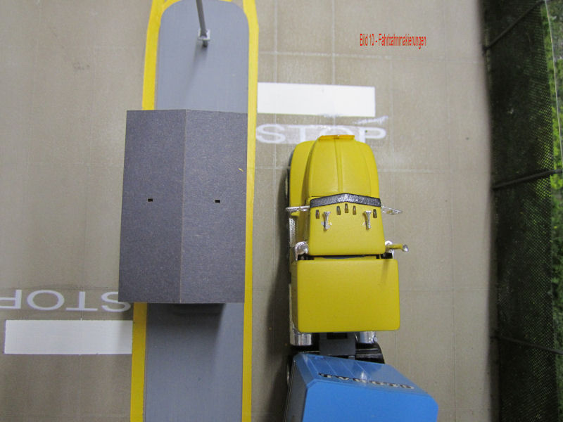 Bild 8 - Die LKW´s bekommen auch noch eine weiße Haltelinie verpaßt. Sie entsteht auf die gleiche weise wie die gelben Linien.