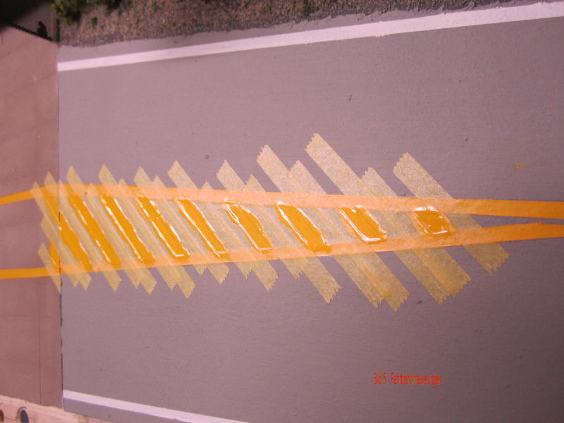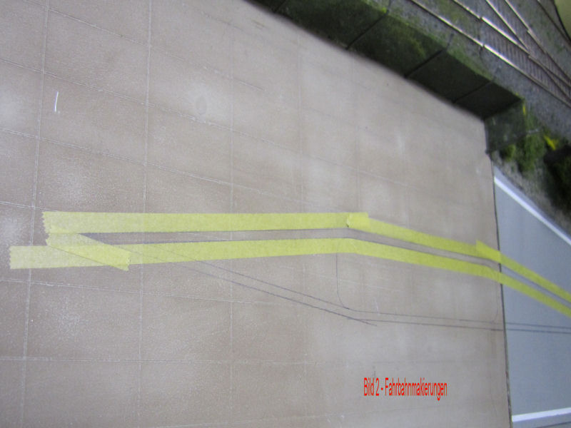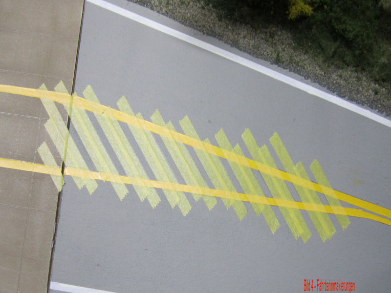 Bild 1 - Zuerst hat Andy die Fahrbahnmakierungen mit Bleistift aufgezeichnet. Linienstärke ca. 2mm.